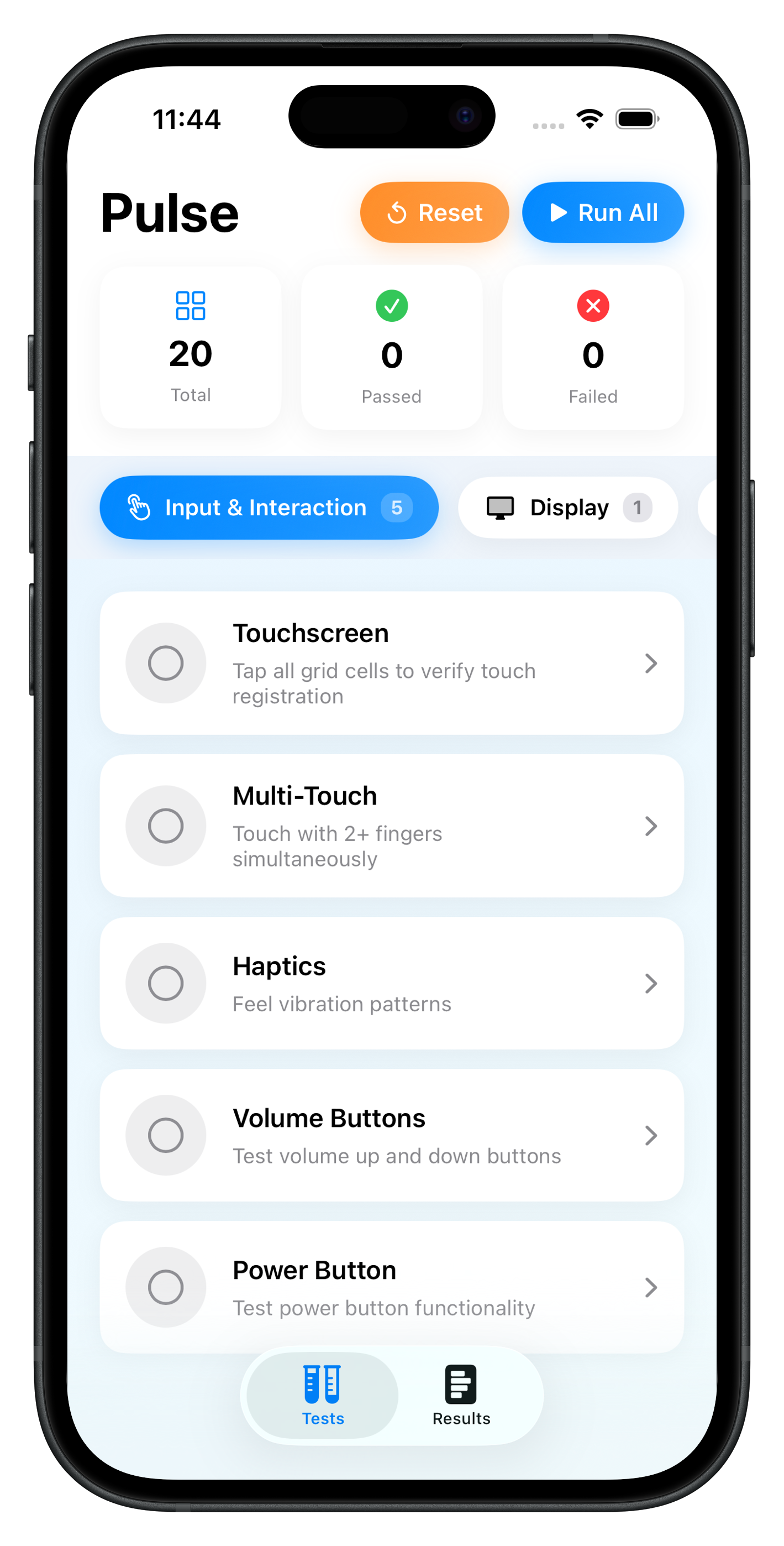 Pulse is a diagnostics app designed to help verify the core functionality of your iPhone,from buttons to sensors. Built with SwiftUI and with no data collection.